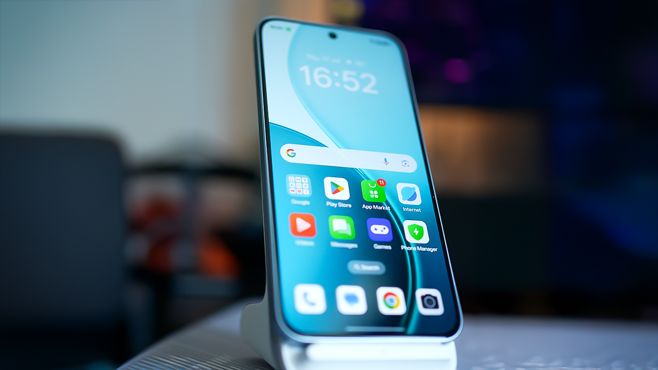 تظهر انسيابية التصميم وجودة التصنيع العالية للهاتف بكل تفاصيله لدى إمساكه وحمله باليد. حيث يُدمج الشكل الجمالي مع متانة ملموسة دون تضحيات. وفيما تتألق التصاميم المتغيرة بالضوء على الغطاء الخلفي للهاتف، تغطي الشاشة واجهته الأمامية بالكامل تقريباً مع حواف نحيفة وتقنية AMOLEDبمقاس 6.57 إنش ودقة +FHD. تقدم الشاشة كذلك معدل تحديث يصل إلى 120 هرتز لضمان تجربة عرض سلسة، بالإضافة لدعم ألوان 10-بت وتغطية طيف DCI-P3 اللوني بنسبة 100%، مما يعزز تجربة العرض المميزة.