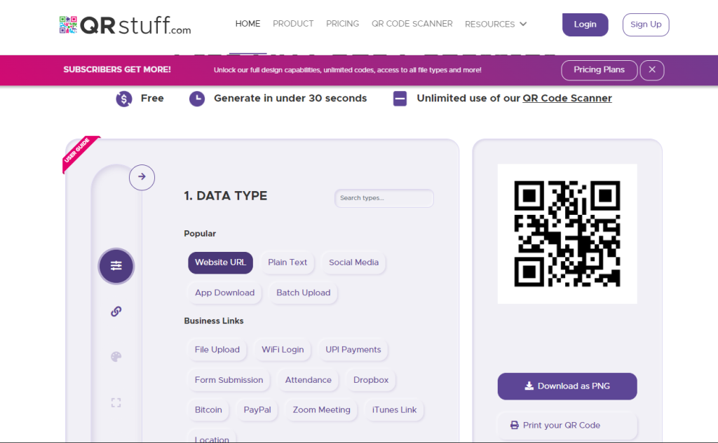 من خلال QRStuff، يمكنك إنشاء رمز QR بسيط لأي نوع بيانات تريده. يمكن أن يكون عنوان URL لموقع ويب أو تطبيق، أو صورة، أو حتى رقم جوال بخطوات سهلة وسريعة مجانا كالتالي: