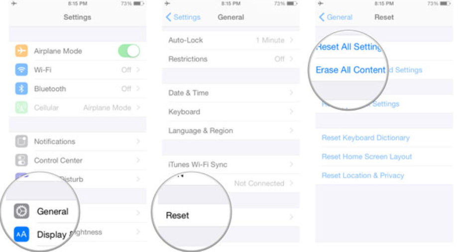 - اختر وظيفة محو الآيفون لحذف كافة البيانات داخل الجهاز