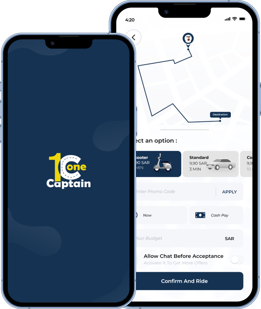 احصل على رحلة آمنة بتكلفة رخيصة وبشكل سريع من خلال حجز مشوارك عبر تطبيق كابتن ون Captain One والذي يساعدك ليس فقط على حجز مشوارك بل والإستمتاع برحلتك عبر سيارة حديثة ومريحة ومن خلال تطبيق كابتن وان. يمكنك تتبع وإدارة رحلتك ومعرفة سعر المشوار واختيار طريقة الدفع المناسبة لك كما توجد عروض متجددة ورحلات كثيرة بأسعار مخفضة يمكن الإستفادة منها مجانا.