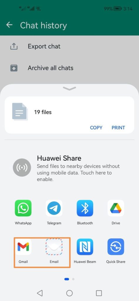 الطريقة الثالثة: نقل الواتساب من الاندرويد الى الآيفون عبر البريد الإلكتروني