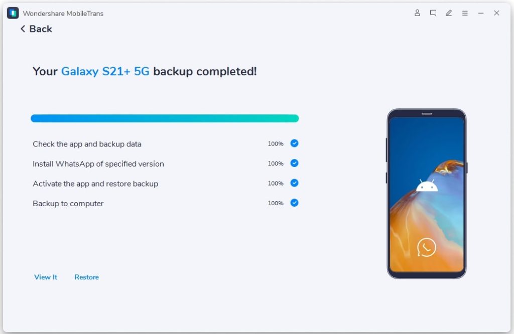وهكذا تكون نجحت في نقل محادثات واتس من اندرويد الى ايفون. وعند تشغيل الواتس من على هاتفك الجديد، سوف سجل الدردشة والميديا والإعدادات وكل شئ قد تم إستعادته على الايفون دون أي مشكلة.